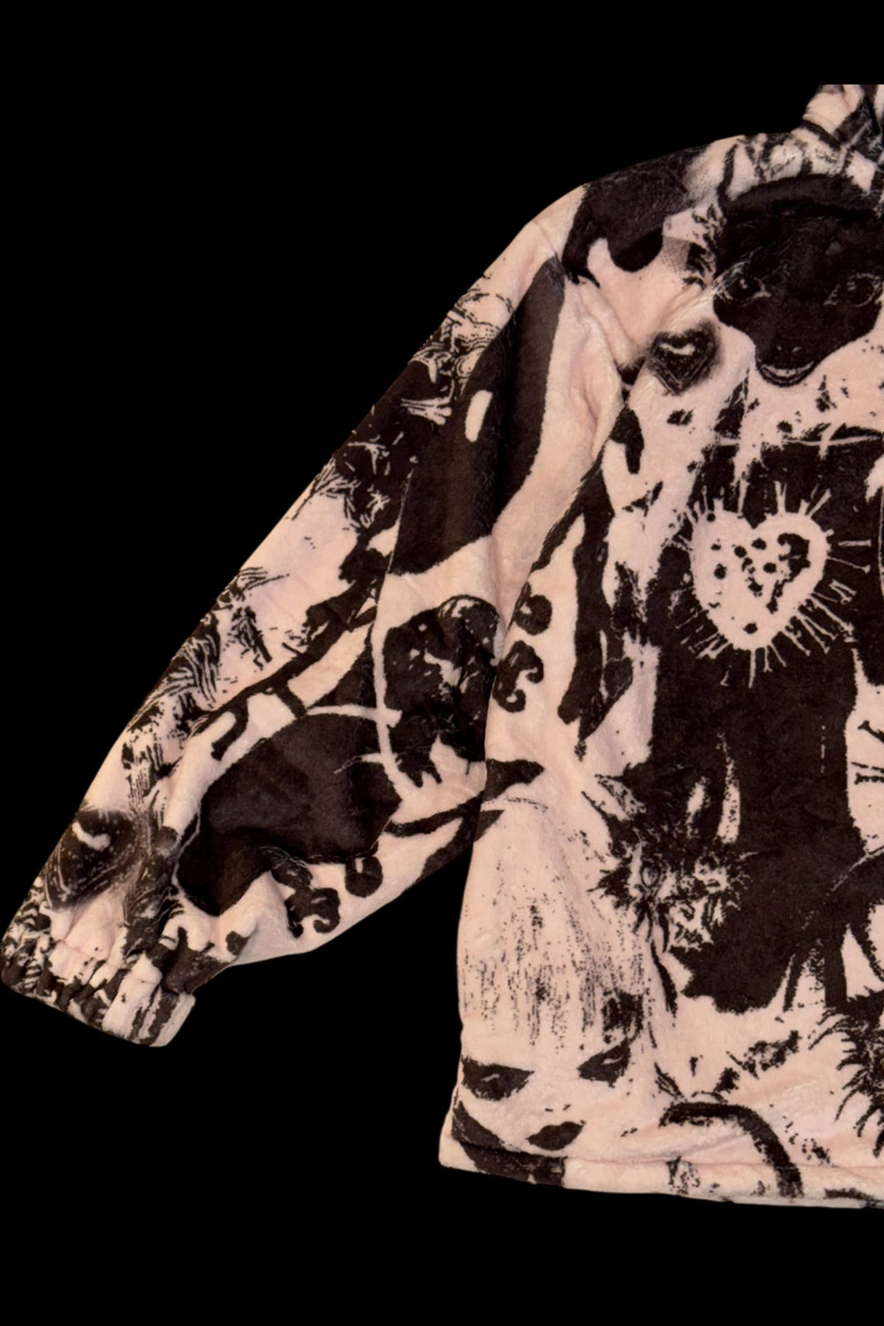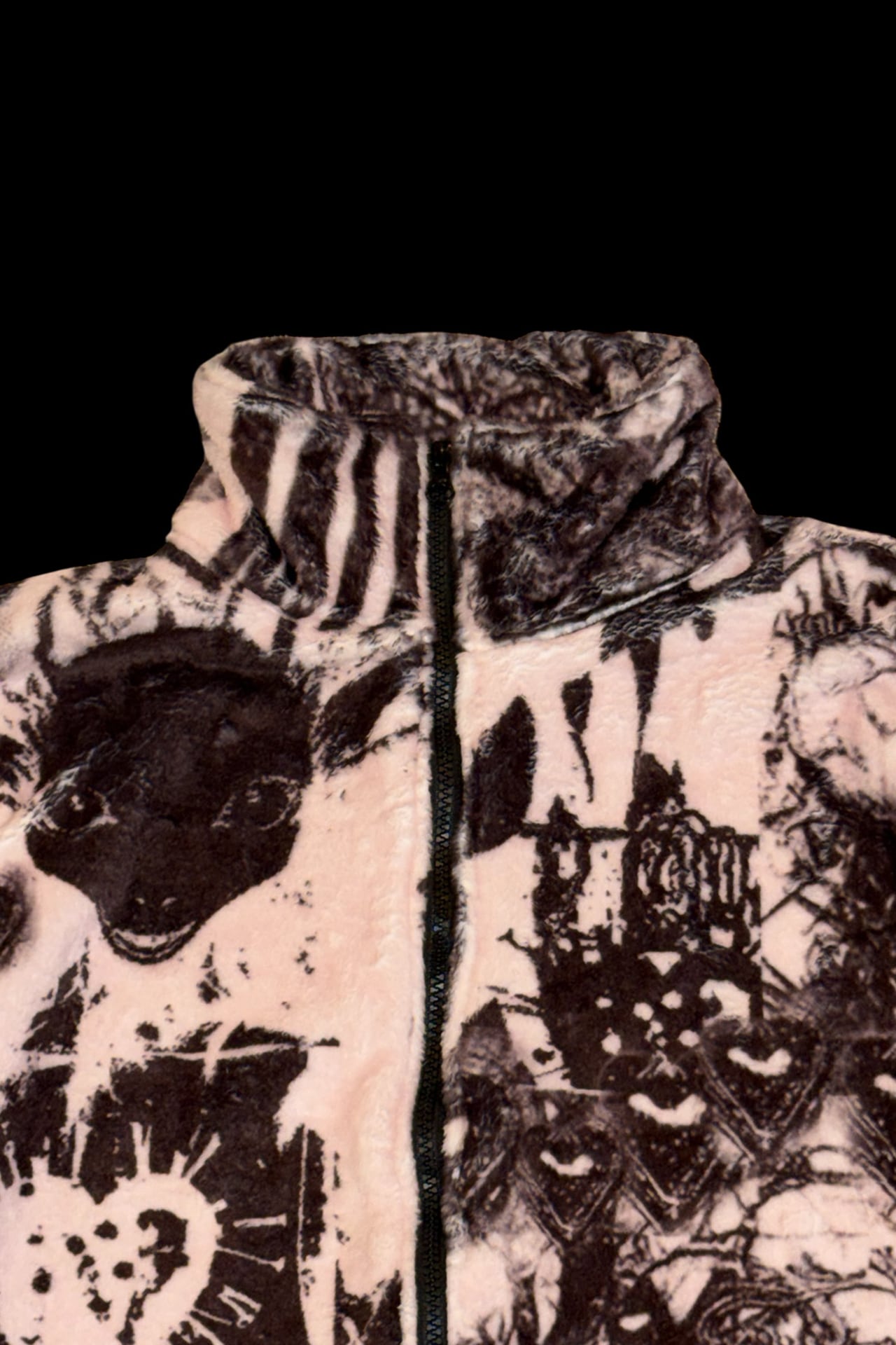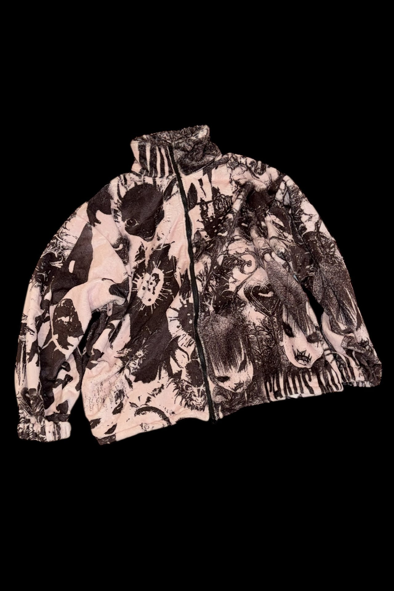 TEKITO-★のアートがコラージュされたビッグシルエットファージャケット