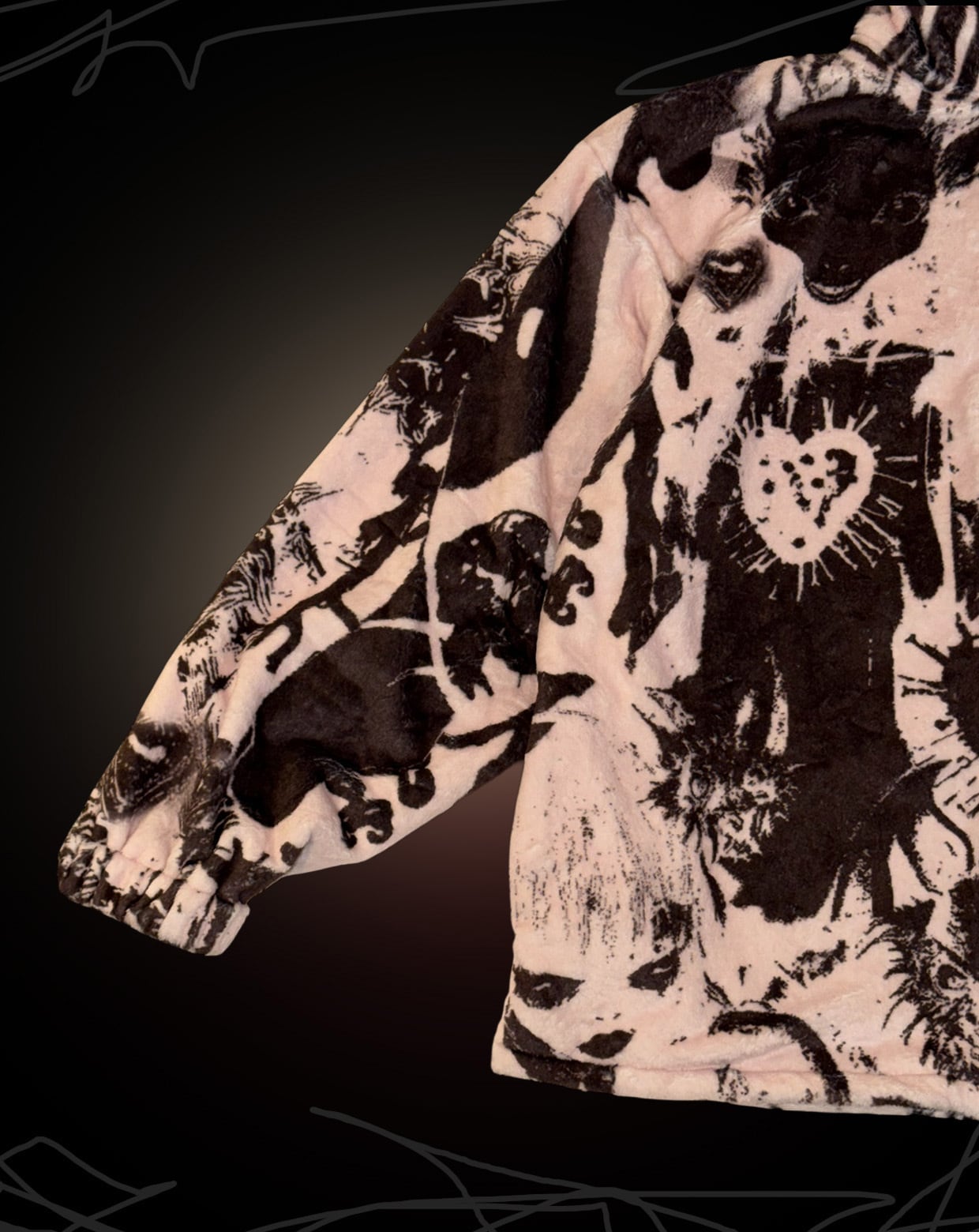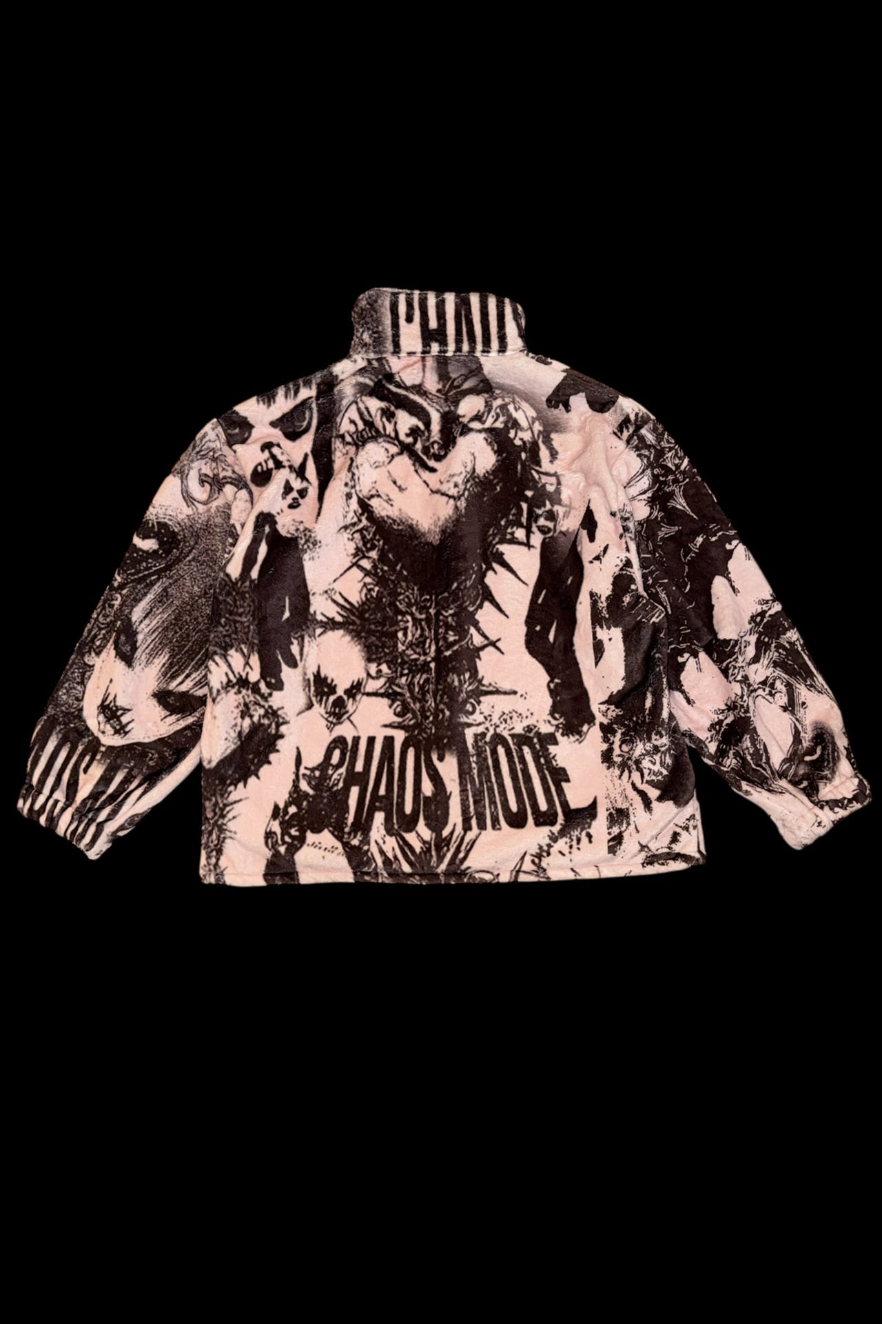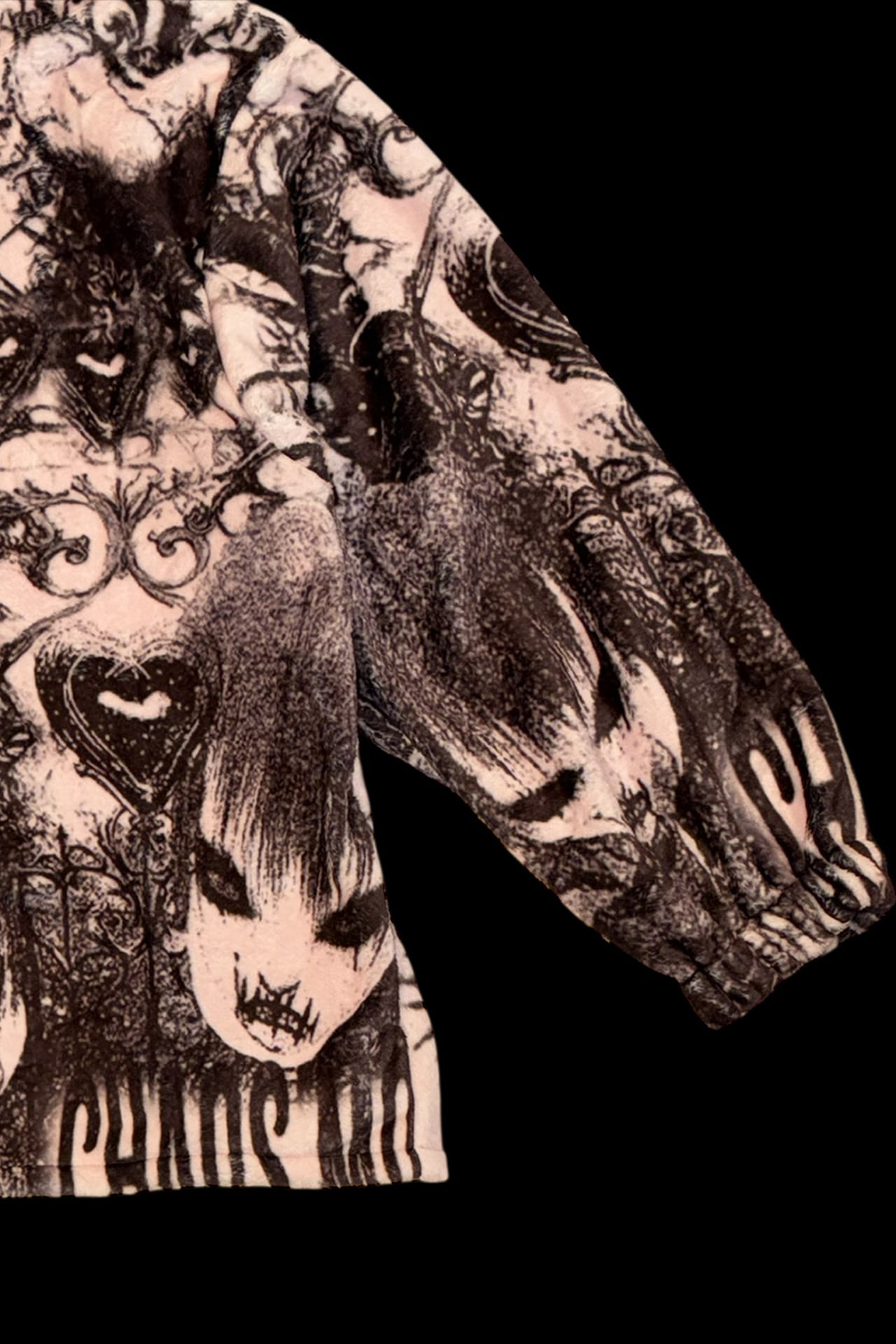TEKITO-★のアートがコラージュされたビッグシルエットファージャケット