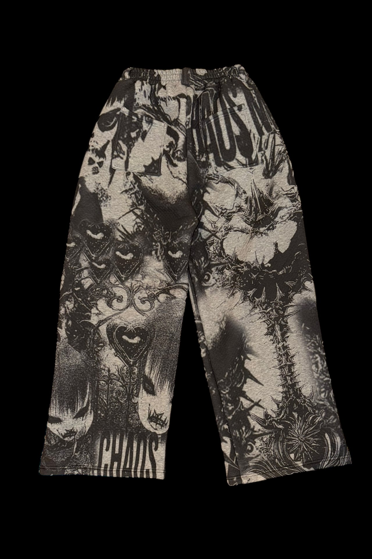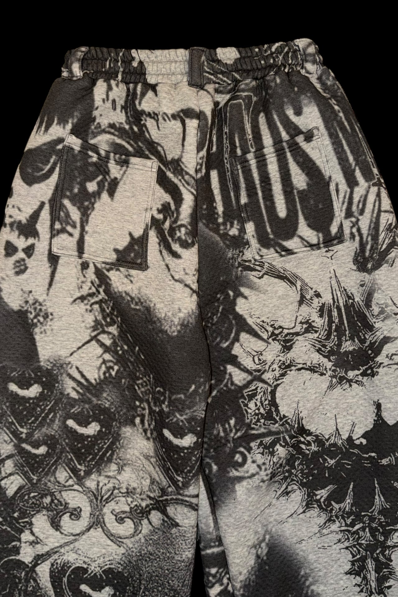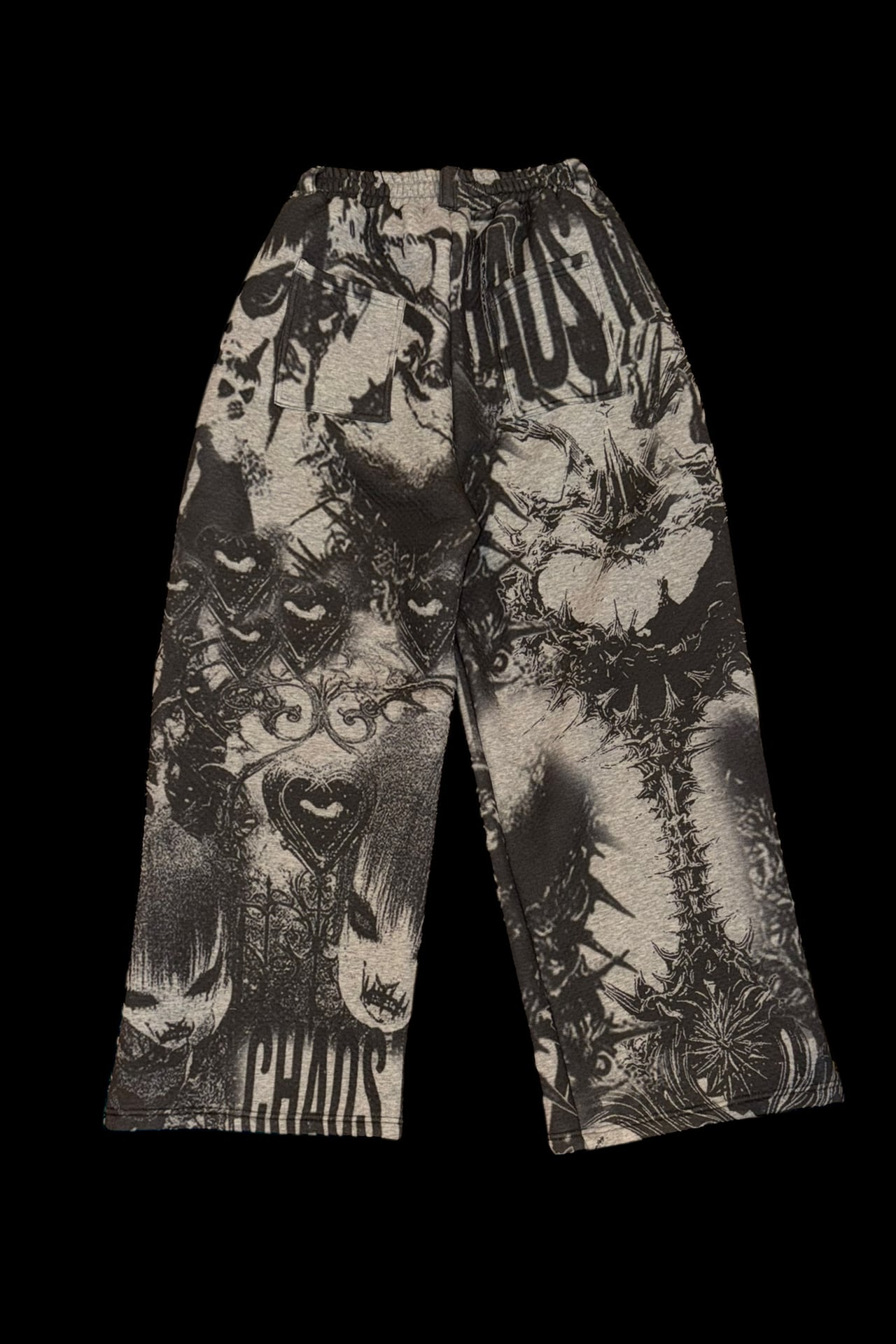 NEW ITEM こだわったクッション生地のふわふわした素材でTEKITO-★のアートをコラージュしたCotton100%のビックシルエットスウエットパンツ SIZE ウエスト64cm(ゴム), 股上35cm,股下61cm,総丈96cm,裾幅30cm,ヒップ110