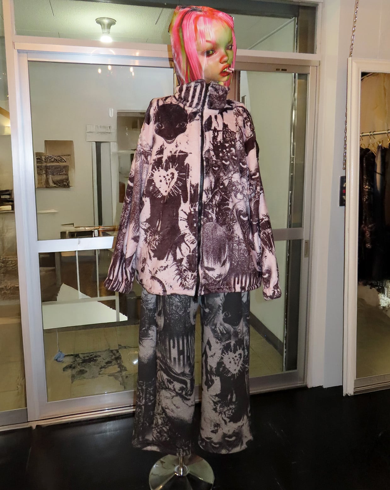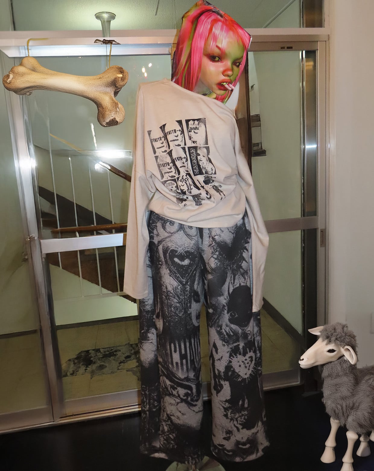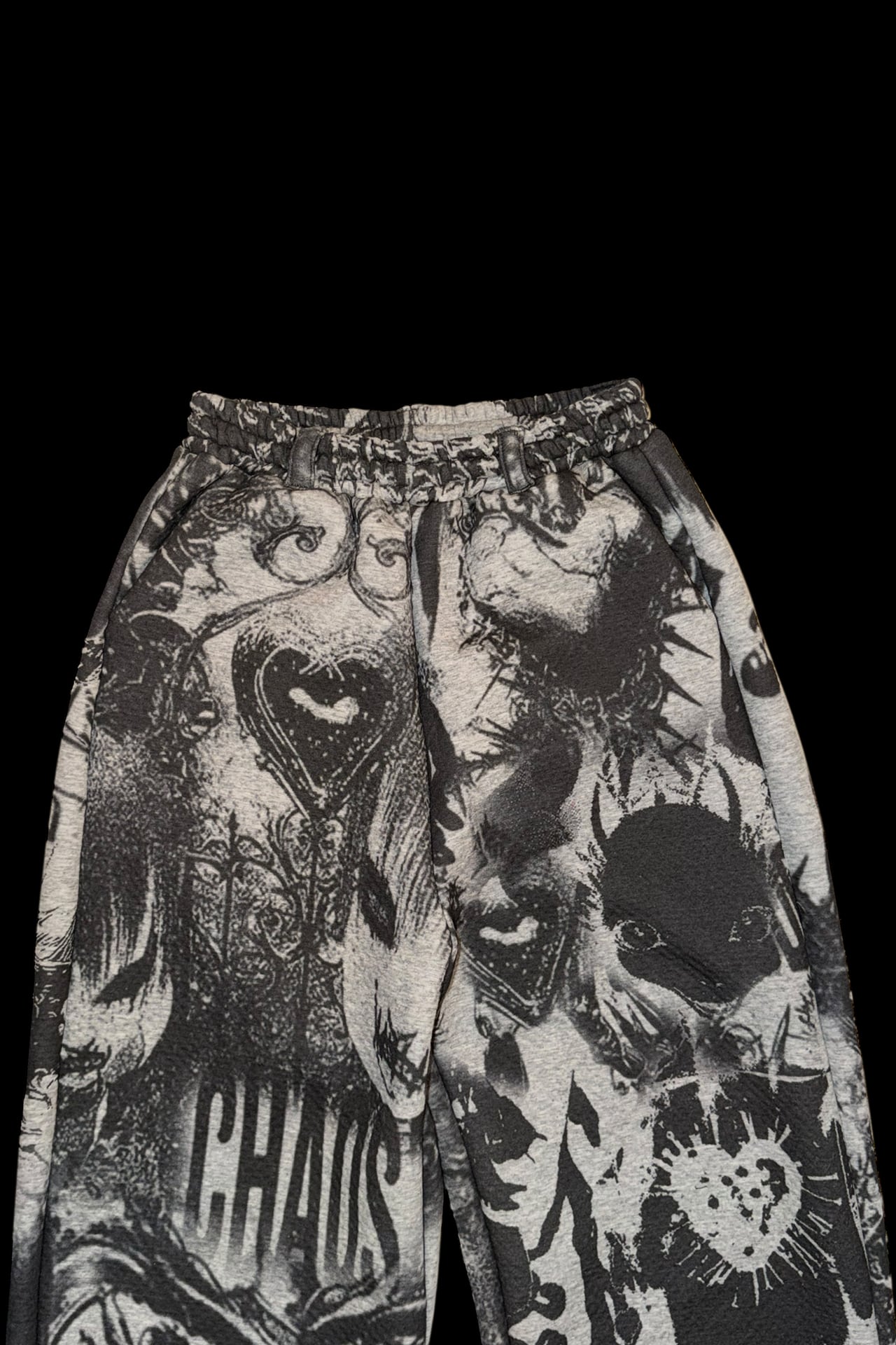 NEW ITEM こだわったクッション生地のふわふわした素材でTEKITO-★のアートをコラージュしたCotton100%のビックシルエットスウエットパンツ SIZE ウエスト64cm(ゴム), 股上35cm,股下61cm,総丈96cm,裾幅30cm,ヒップ110